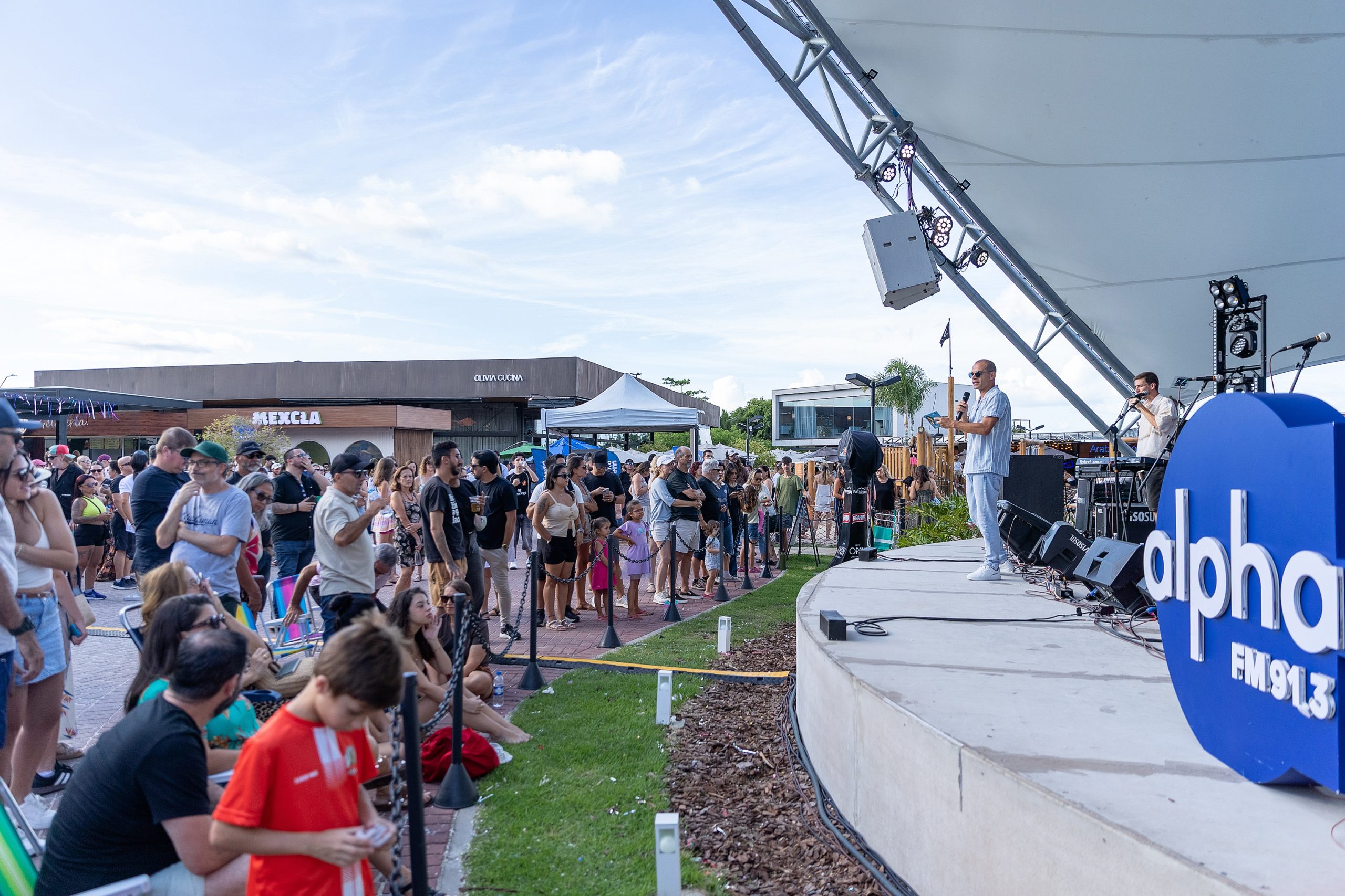 O último domingo, 22 de fevereiro, foi daqueles dias que ficam na memória de quem escolheu curtir o fim de tarde em Jurerê. O Festival da Alpha tomou conta do Lounge do Open Shopping Jurerê, no Norte da Ilha, e transformou o espaço em um verdadeiro encontro de gente bonita, boa música e energia lá em cima.